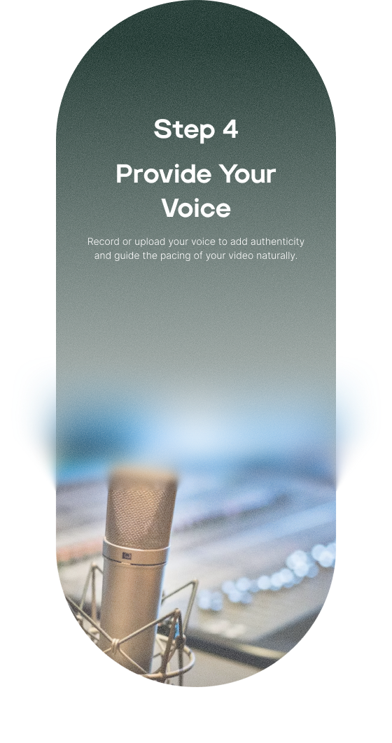 Simply upload your property images, description, and agent details — our AI will automatically create a professional promotional video in minutes.